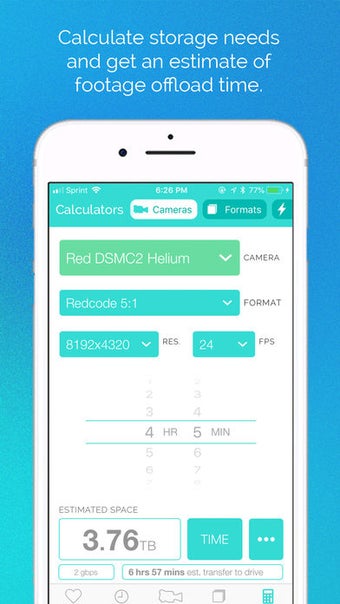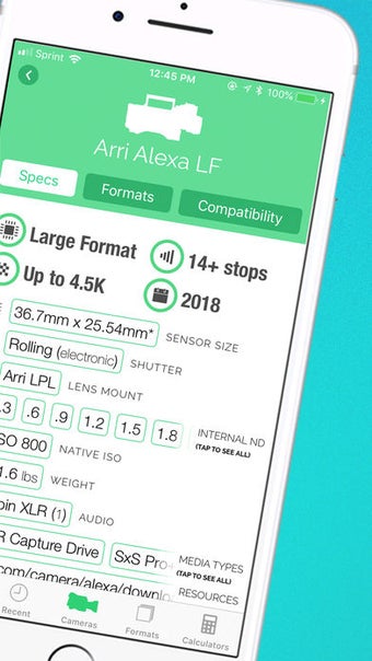 รูปแบบกล้องเป็นแอปพลิเคชันสำหรับ iPhone ที่ออกแบบมาสำหรับมืออาชีพในอุตสาหกรรมสื่อมัลติมีเดีย มันให้รายการที่ครอบคลุมทั้งหมดกว่า 150 กล้องจาก Arri, Canon, Red, Sony, Blackmagic, Panasonic และอื่นๆ แอปพลิเคชันยังช่วยให้คุณสามารถค้นหากล้องตามรูปแบบได้ รวมถึง ProRes, DNxHR, Blackmagic Raw, และ ProRes Raw ด้วย Cameras Formats คุณสามารถตอบคำถามสำคัญเช่นพื้นที่จัดเก็บที่คุณต้องการสำหรับเวลาบันทึกที่กำหนด, แบตเตอรี่ที่จะใช้งานได้นานเท่าไร, หรือจำนวนที่คุณต้องการสำหรับการถ่ายภาพ แอปพลิเคชันยังรวมข้อมูลเช่นช่วงไดนามิก, ขนาดเซ็นเซอร์, ค่า ISO ธรรมชาติ, ช่องเสียบเลนส์, ความละเอียด, ความเร็วสูงสุดต่อวินาที, และลิงก์ไปยังเว็บไซต์ผู้ผลิตสำหรับเฟิร์มแวร์และคู่มือ คุณสามารถจดบันทึกข้อสังเกตและบันทึกการคำนวณของคุณไว้เพื่อใช้ในภายหลัง แอปพลิเคชันเป็นฟรีในการดาวน์โหลดและรองรับ iOS 12 และเวอร์ชันใหม่กว่า โดยบางคุณลักษณะต้องการ iOS 13 หรือเวอร์ชันใหม่กว่า โปรดทราบว่าคุณลักษณะราคาใช้ลิงก์พันธมิตรจาก B&H Photo Video.